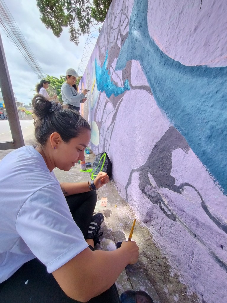 No grafite, encontrei um espaço de liberdade para expressar minhas ideias nos muros da cidade e contribuir para a construção de lugares com maior presença do feminino, dentro de um meio tradicionalmente masculino.
