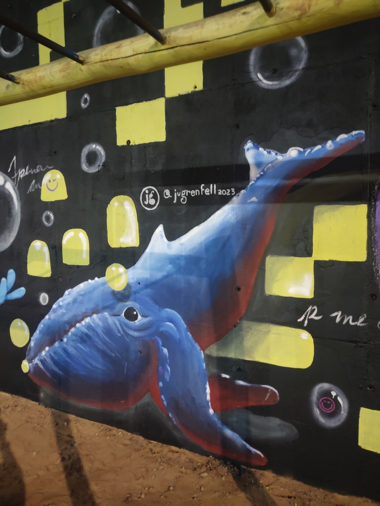 Um terceiro elemento central é a baleia — grande mamífero que sintetiza minha necessidade de respirar e concentrar-me em mim mesma ao longo da trajetória individual.