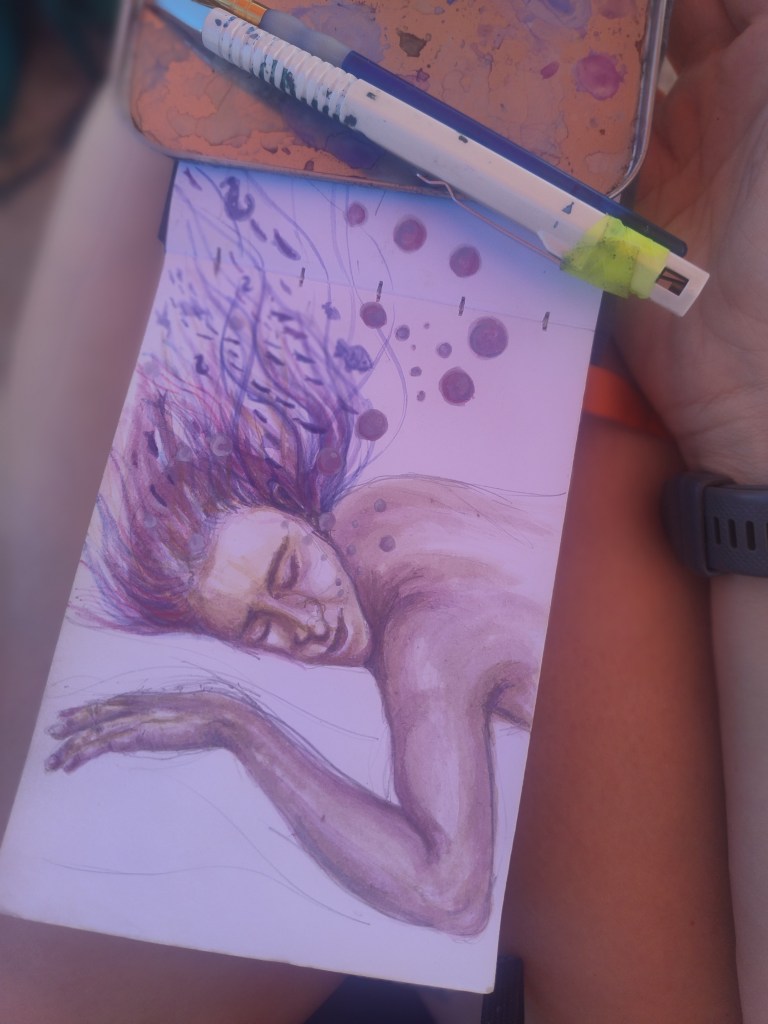 Atualmente, concentro-me no processo de transformação através da arte, utilizando símbolos para representar o feminismo, estados emocionais e a humanização da natureza.