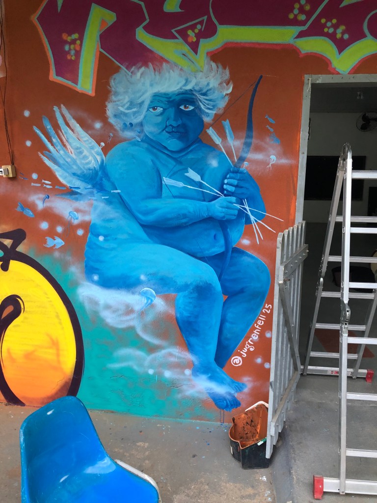 Em 2019, voltei a desenhar — agora em uma área diferente, o grafite. Após uma separação traumática, a arte tornou-se um espaço de redescobrimento do feminino, e desde então venho produzindo trabalhos que dialogam com o papel da mulher e seus enfrentamentos na sociedade.